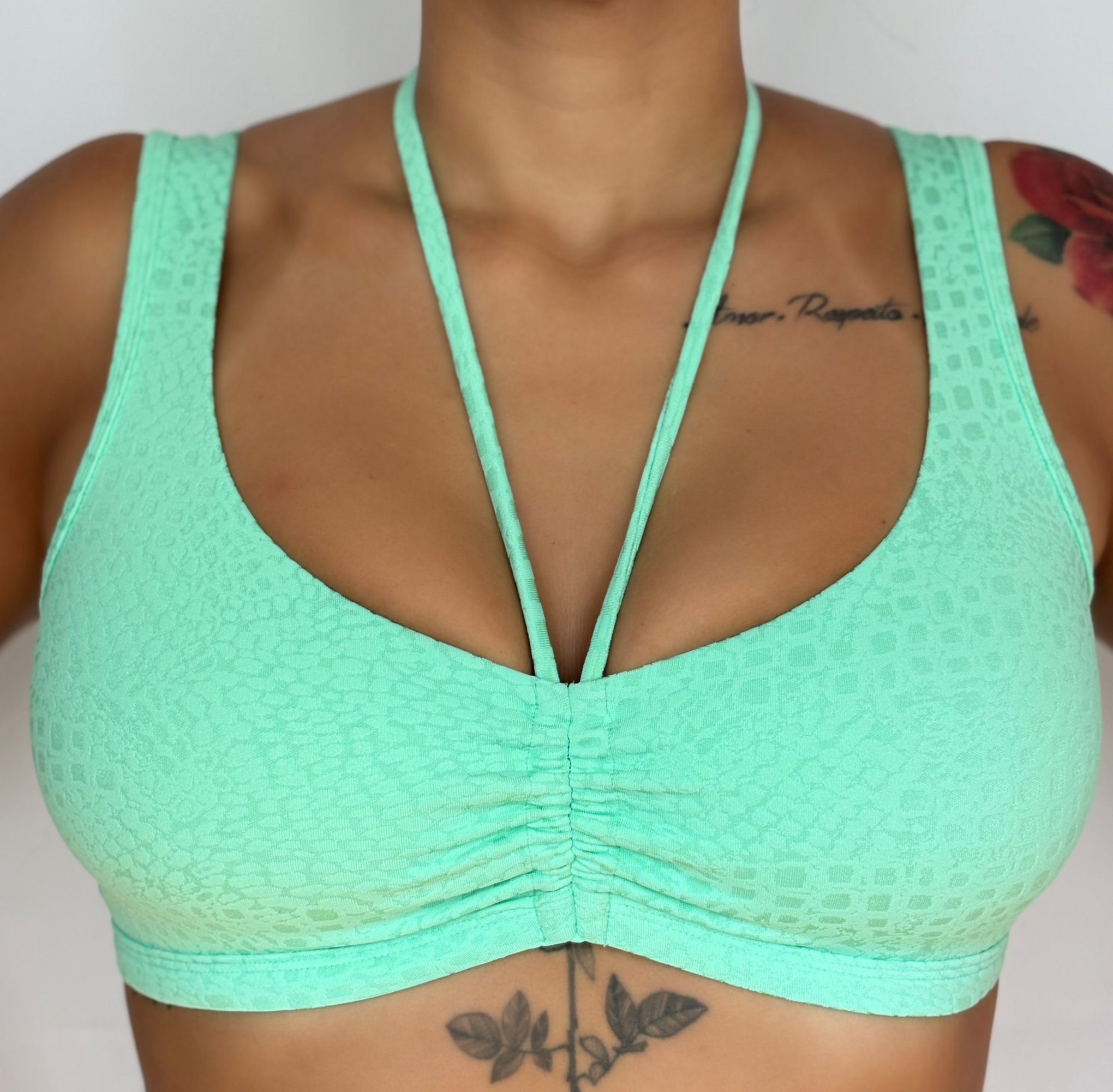 Top Fitness com Laço Power Jacquard Verde Água